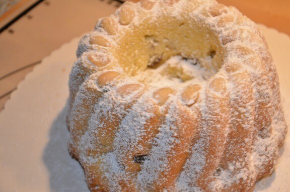 Quitte à avoir piqué le moule à Kouglof de ma copine, autant faire un vrai Kouglof. J’ai utilisé une recette de Thierry Mulhaupt, qui est un pâtissier strasbourgeois.