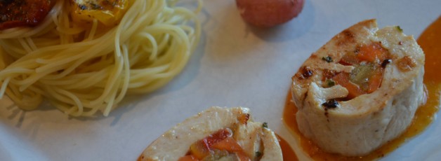 Ballotines de poulet aux légumes sauce poivrons rouges