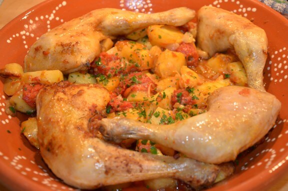 - Verser la sauce sur les pommes de terre( ajouter les cuisses de poulet si nécessaire) et laisser cuire 20 minutes au four.Parsemer de thym frais ou de persil et servir aussitôt.