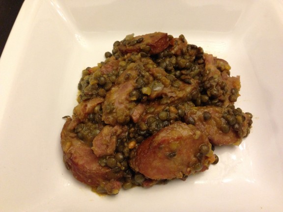 Voici ma <strong>recette de lentilles</strong>Â avec de la saucisse de Morteau.