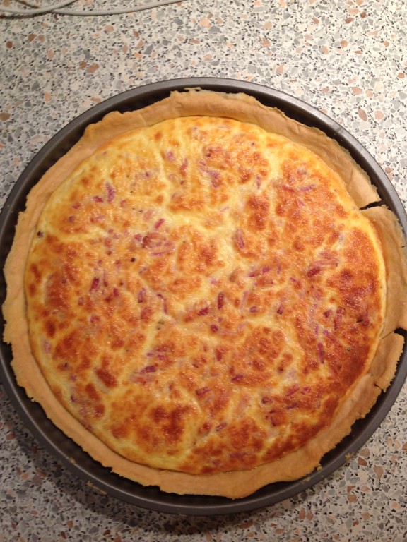 - Etaler la pate a quiche dans un moule à tarte ( environ 28 cm de diamètre)