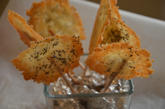 Voici une des recettes simple et rapide pour l’apéritif. Des tuiles de parmesan croustillantes que je propose sur un bâtonnet en sucette.
