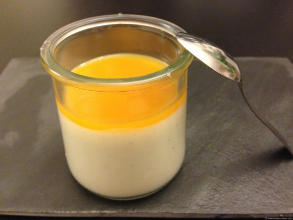 Pour le dressage, à vous d’être créatifs! Je vous ai proposé récemment une panna cotta chocolat blanc et framboises , ici , je la propose avec un coulis de mangues; mais on peut très bien aussi avec n’importe quel coulis (coulis framboises maison ici)