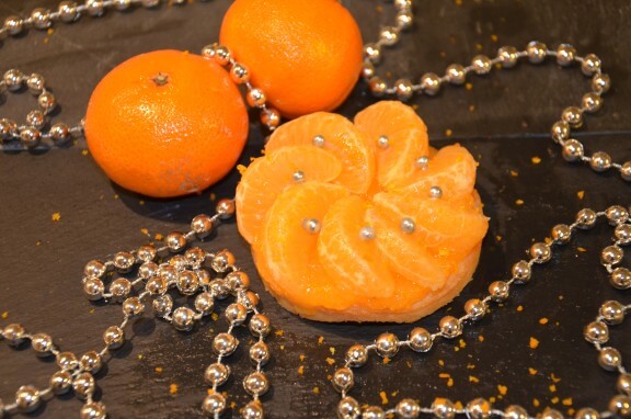 Après un premier essai compliqué ( les clémentines glissaient sur la gelée), Vanessa m’a conseillé de faire le dressage avec le cercle , de laisser prendre un peu au frais et de démouler au moment de servir , et en effet, l’essai a été plus concluant.