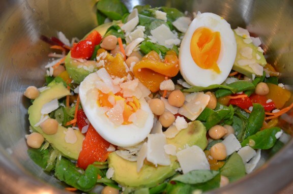J’y ai ajouté un avocat coupé en lamelles , 2 oeufs durs ( que je voulais mollet, mais je les ai oublié …)