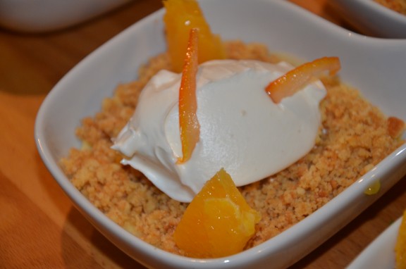 - Dresser quelques quenelles de mousse citronnelle par-dessus le crumble.
