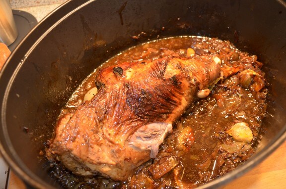 - Déposer le couvercle et enfourner à chaud à 140°C pendant 7 heures en n’oubliant pas d’arroser le gigot ou l’épaule de temps en temps.