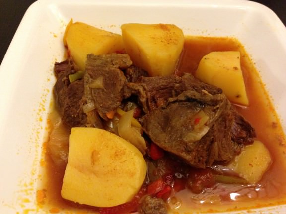 Le goulash, la goulache ou la soupe de goulash est à l’origine une soupe hongroise . Si la préparation varie, les ingrédients de base restent une viande (boeuf, veau, porc,cheval,agneau ou mouton), des légumes (carotte, tomate, chou-navet, poivron, etc.) même si je l’aime simplement avec des pommes de terre, des aromates : oignons,poivre, sel et l’inévitable papika. Il a donc une couleur rouge très reconnaissable.