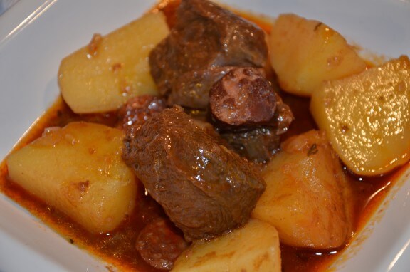 On est proche de notre boeuf bourguignon, mais avec des notes qui nous rappelle les belles saveurs du Portugal. Un plat que j’ai fait à la cocotte en pierre car j’avais le temps de laisser mijoter longtemps, mais pour les plus pressés, on peut évidemment le faire à la cocotte minute et réduire les temps au moins de moitié.